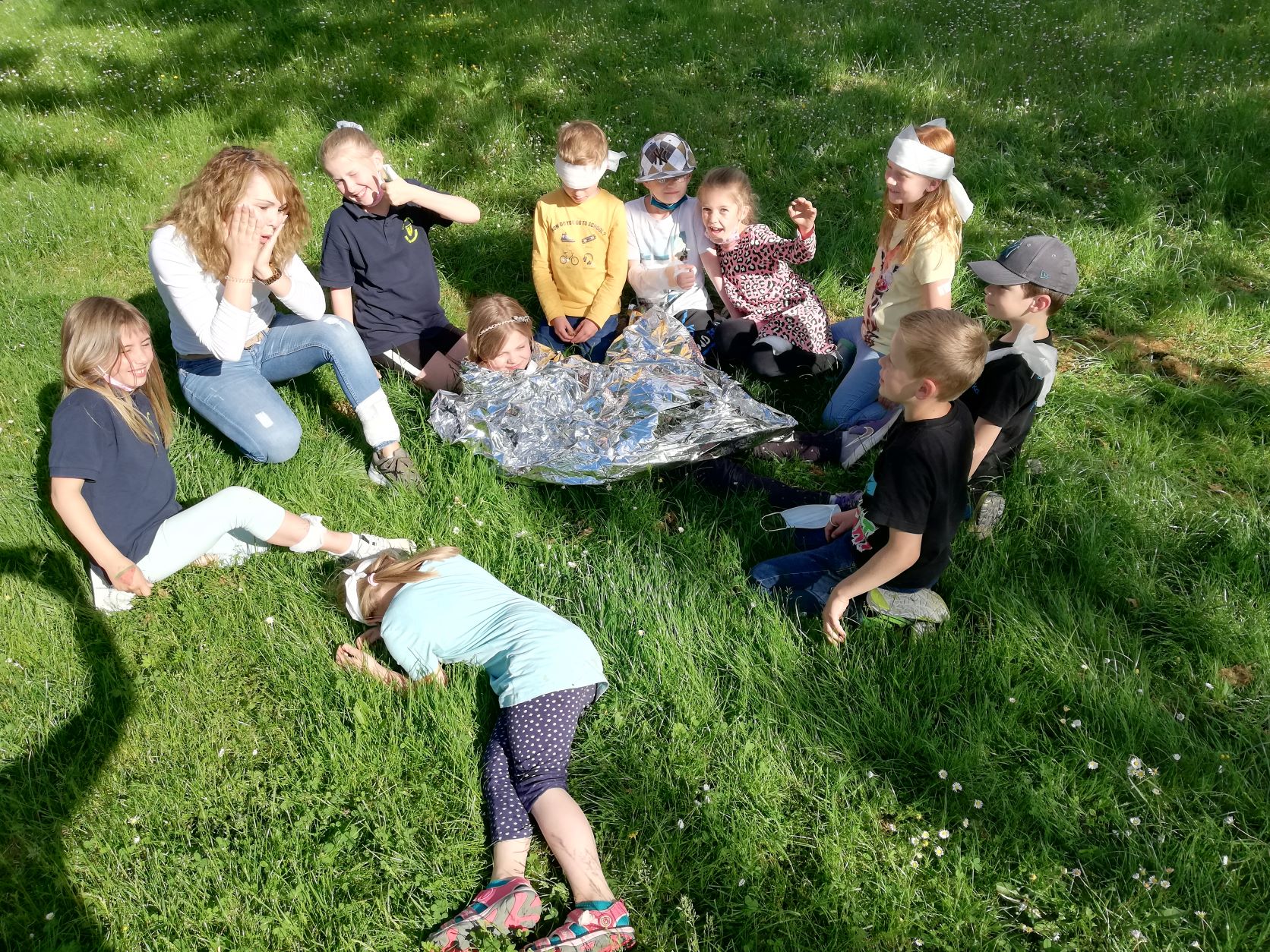 Am vergangenen Mittwoch trafen wir uns bei schönem Wetter im Feuerwehr Garten und haben dort die verschiedenen Materialien aus einem Erste Hilfe Set besprochen, welches unser Feuerlöwe Mika Sander mitgebracht hatte.