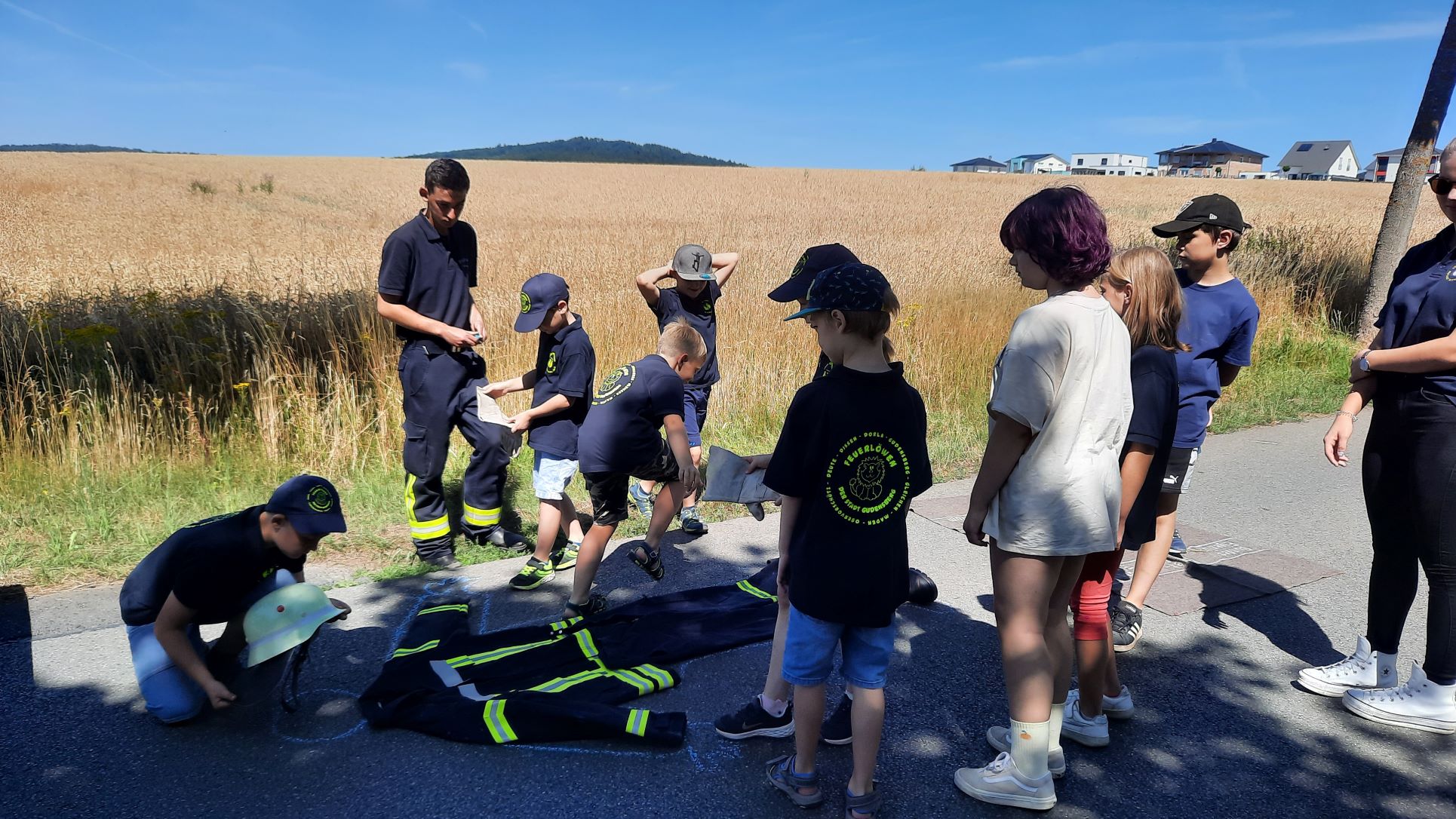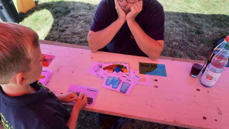 Hierbei mussten die geforderten Aufgaben wie z.B. richtiges Verhalten im Brandfall, Knoten, Notruf, was brennt-was brennt nicht,….gelöst werden.