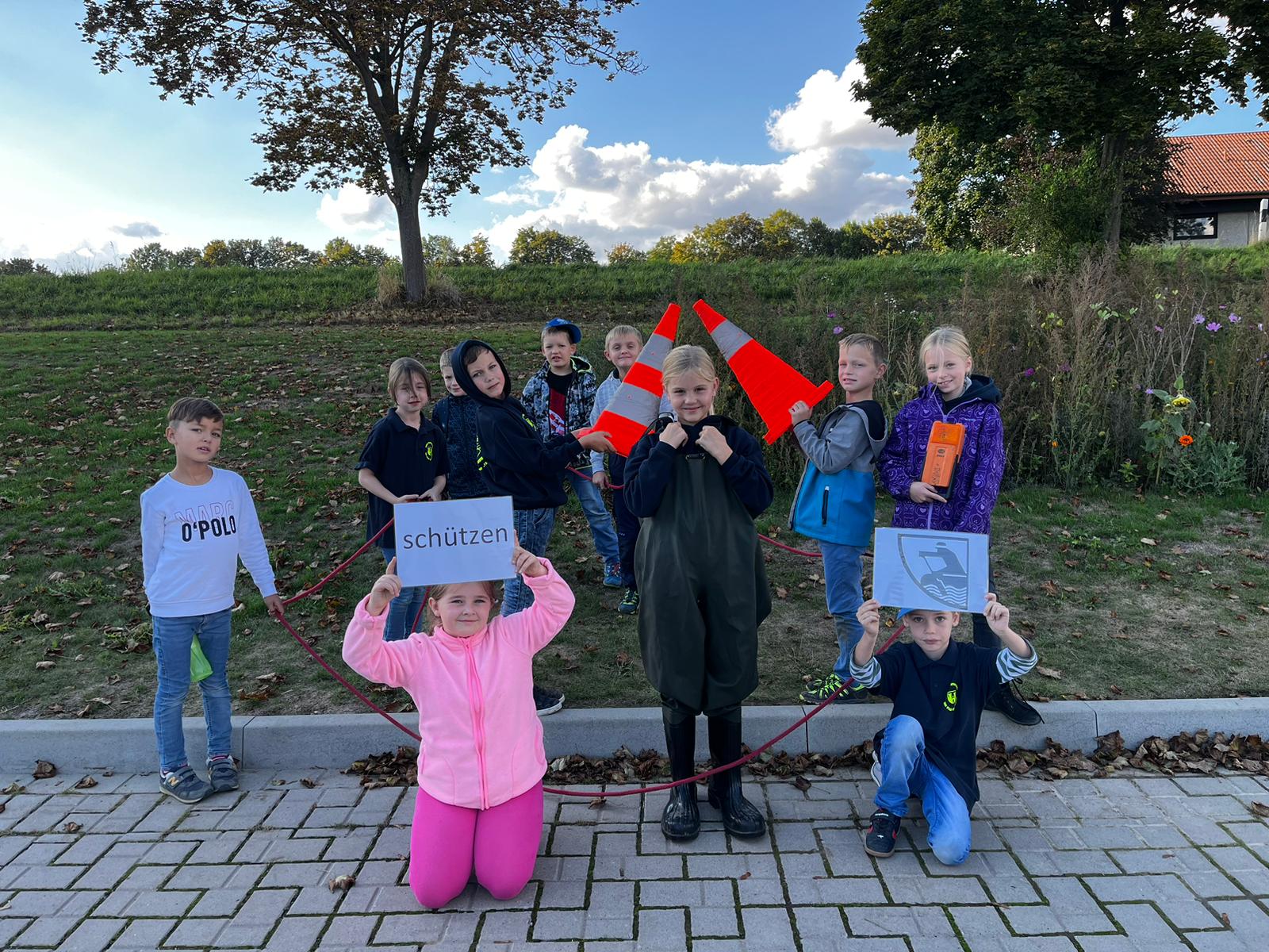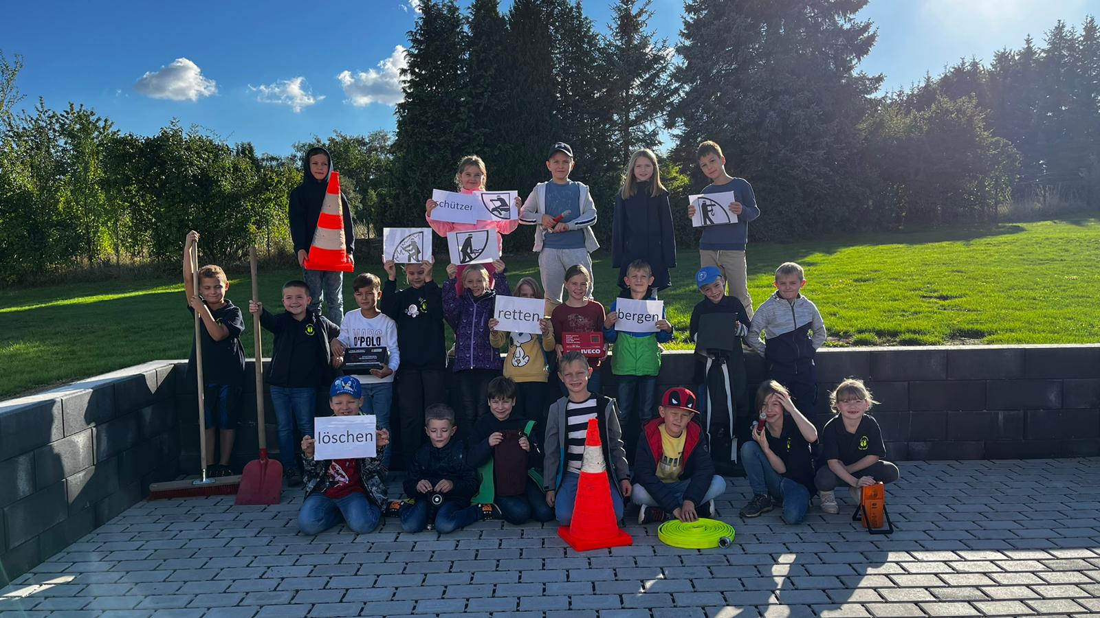 Jeder Feuerlöwe nahm sich etwas, was zu seiner Themengruppen passte…dabei stellten wir schnell fest, dass Pylonen (Verkehrsleitkegel) bei jedem Einsatz zum absichern gebraucht werden.