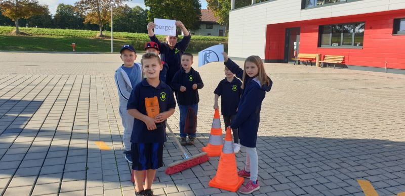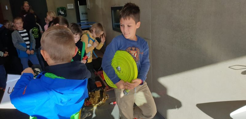 Danach gab es zu den 4 Aufgaben der Feuerwehr passende Materialien, wie Schläuche, Besen, 1. Hilfe Zubehör, Strahlrohre, Trage, Pylonen, Wathose,…diese sollten zugeordnet werden.