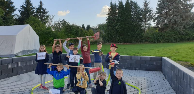 Ähnlich wie bei "Feuer, Wasser, Erde, Luft", musste bei genannten Feuerwehr - Wörtern etwas nachgestellt werden z.B. das rutschen an einer Rutschstange, es gab Nebel und auch Hochwasser…