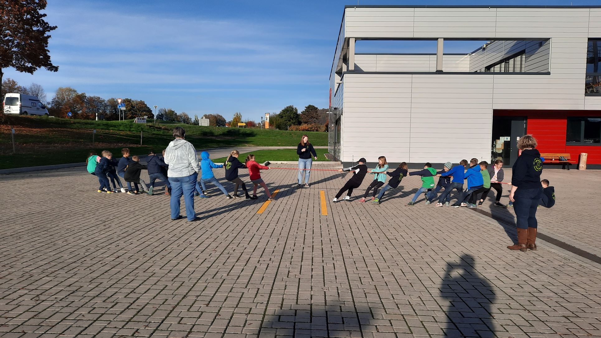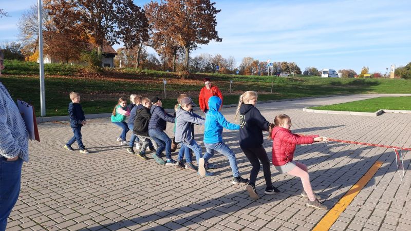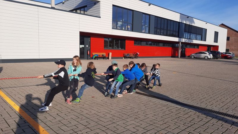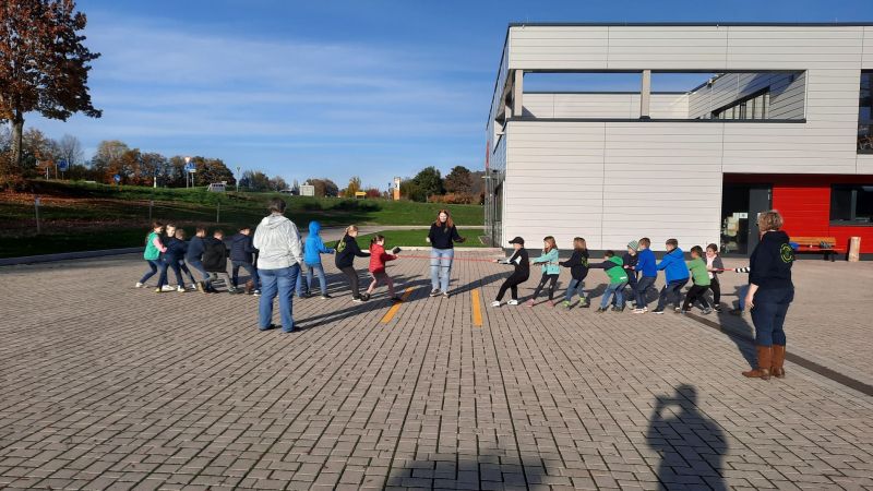 Doch zu Beginn, wie gewohnt erst etwas Bewegung, Kräfte messen beim Tauziehen war angesagt…