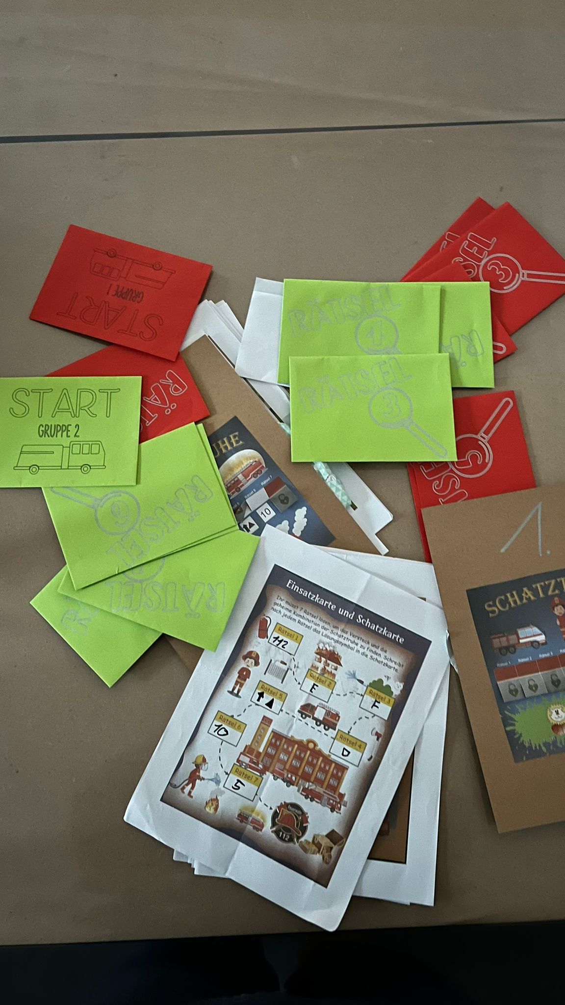 Dazu gab gab es eine Einsatzkarte - Schatzkarte, hier mussten alle Lösungen eingetragen werden, um später mit der richtigen Kombination die Schatztruhe öffnen zu können.