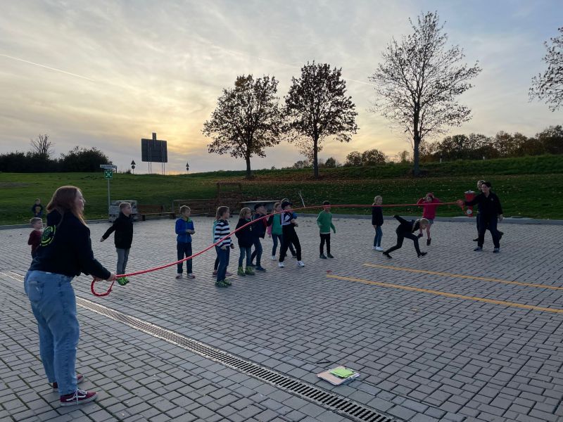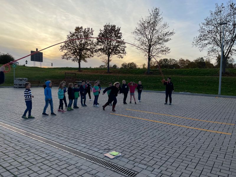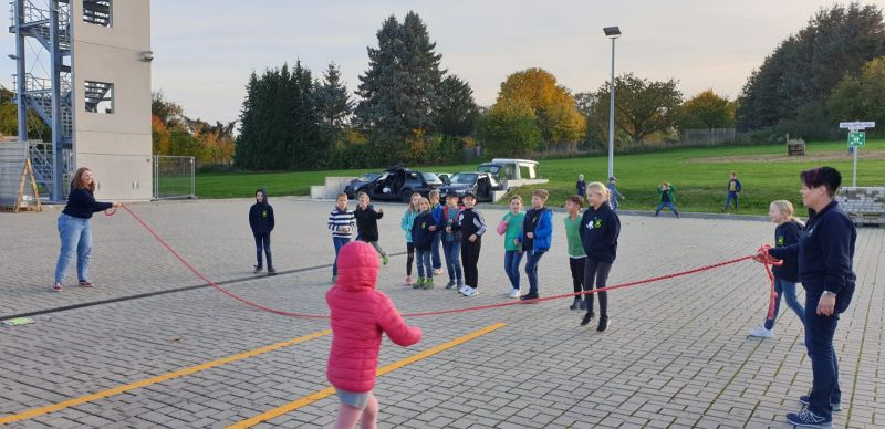 Nach einer Runde Seilspringen hieß es noch mal Hochwasser, Rutschstange und Rauch.