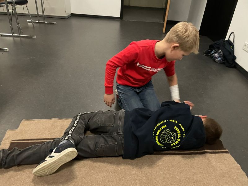 Die Stabile Seitenlage sitzt nun bei allen. Anhand der 5 K‘s super erklärt und umzusetzen….nachdem alle "Bewusstlosen" Feuerlöwen wieder fit waren, ging es weiter zur nächsten Station.