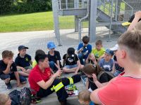 Kennzeichen von ELW und DLK mussten durchgegeben werden, Fenster am Übungsturm gezählt, die Farbe des Gabelstaplers abgefragt, Übungsatemschutzflaschen kontrolliert, Tore gezählt, Hausnummer abgefragt, ebenso die Uhrzeit,…. und auch das Datum unseres Jugendfeuerwehr Jubiläums welches am 03. + 04.11.2023 stattfindet, musste auf dem Plakat im Schaukasten herausgefunden werden.