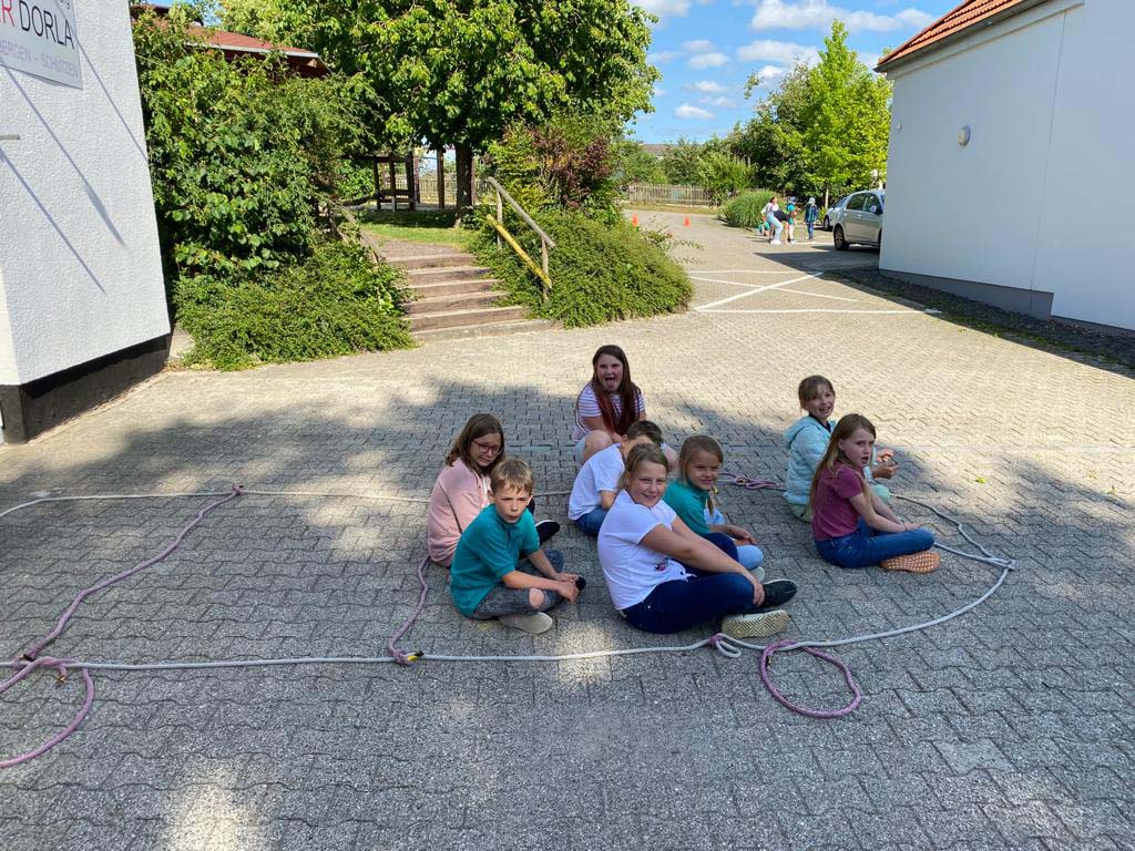 An einer anderen Station durften die Kids kreativ werden und mit Hilfe von Leinen und Knoten ein Feuerwehrauto „legen“.