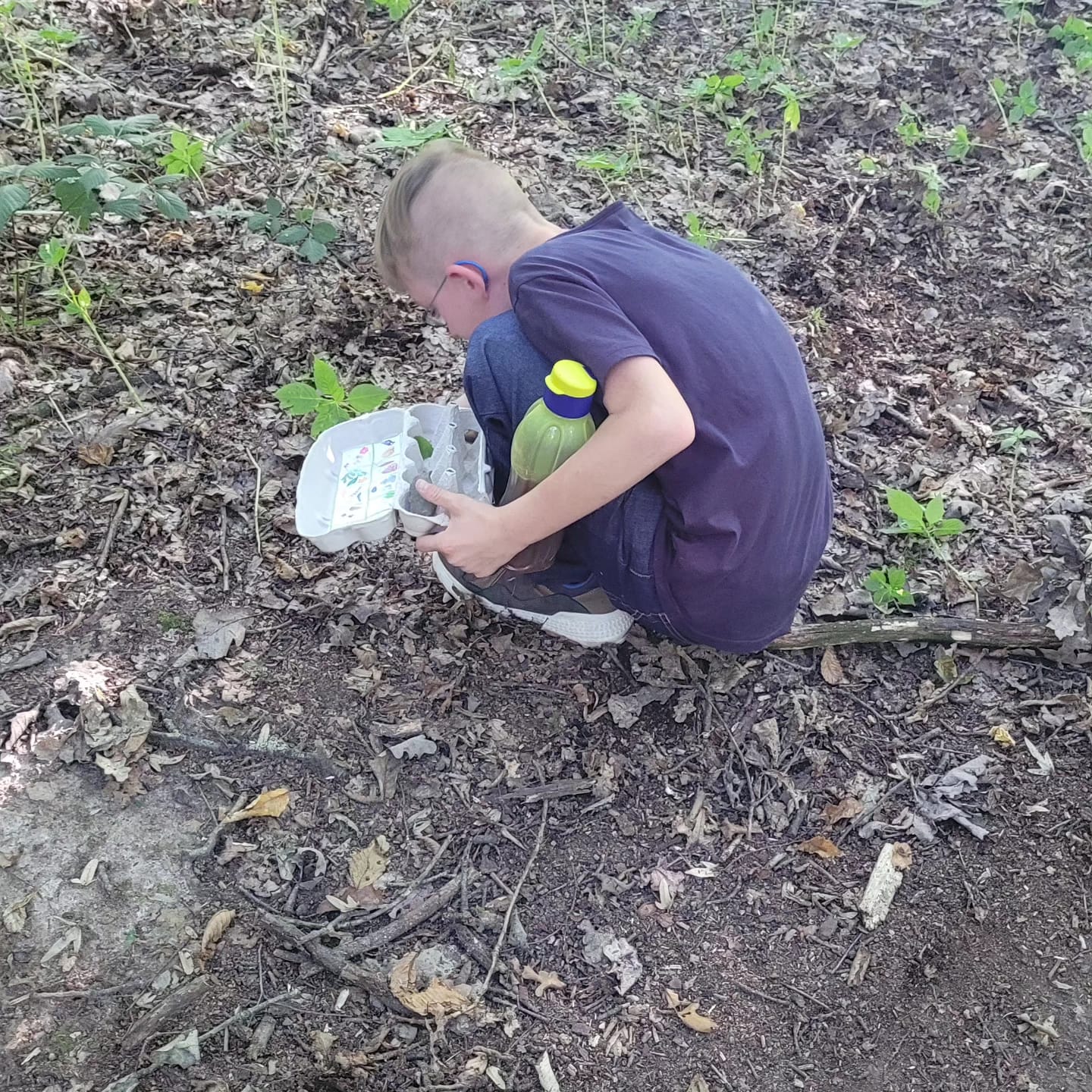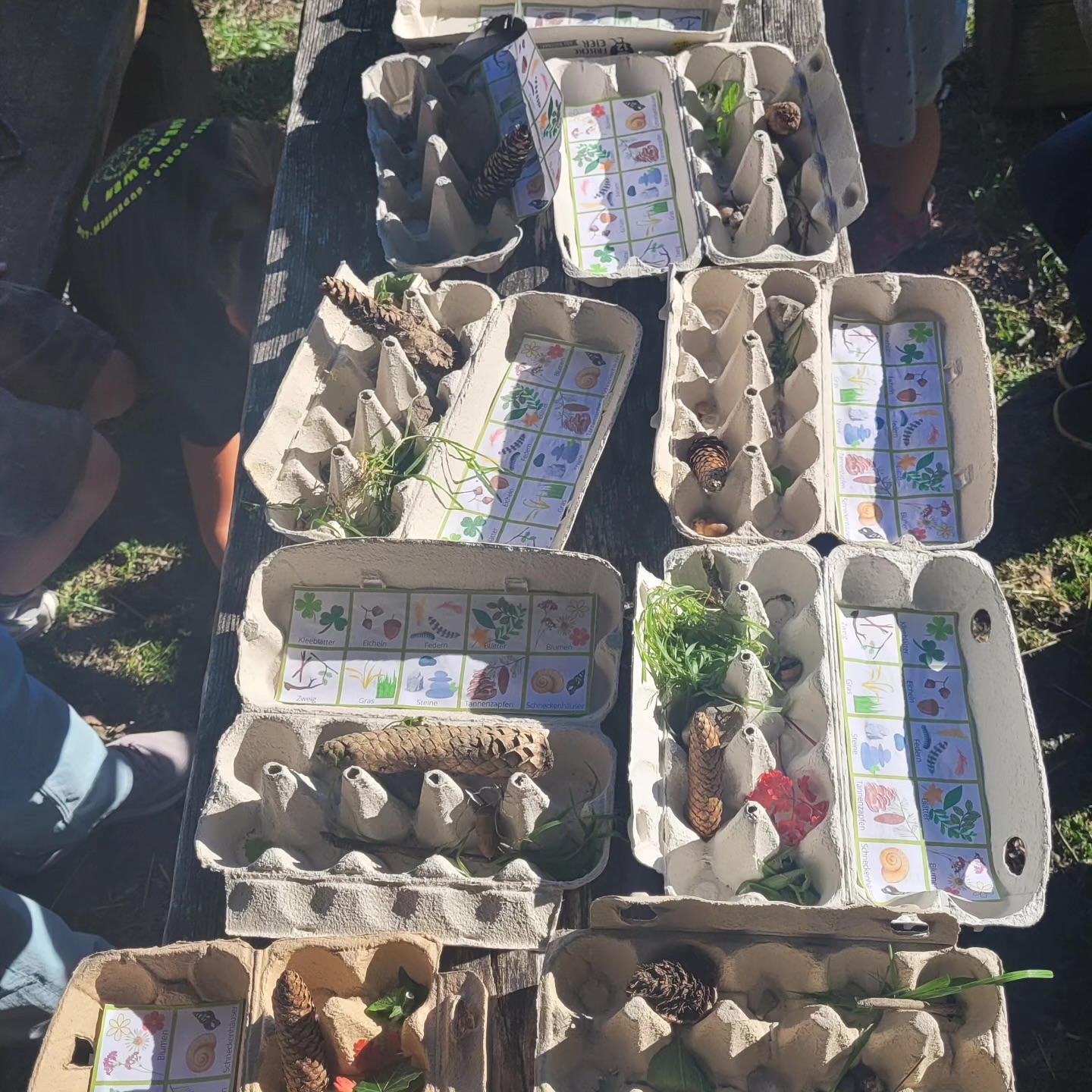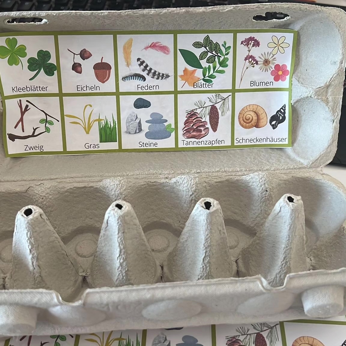 Jedes Kind sollte einen Eierkarton mitbringen. In den Deckel wurde eine Tabelle mit verschiedenen Waldgegenstände geklebt.