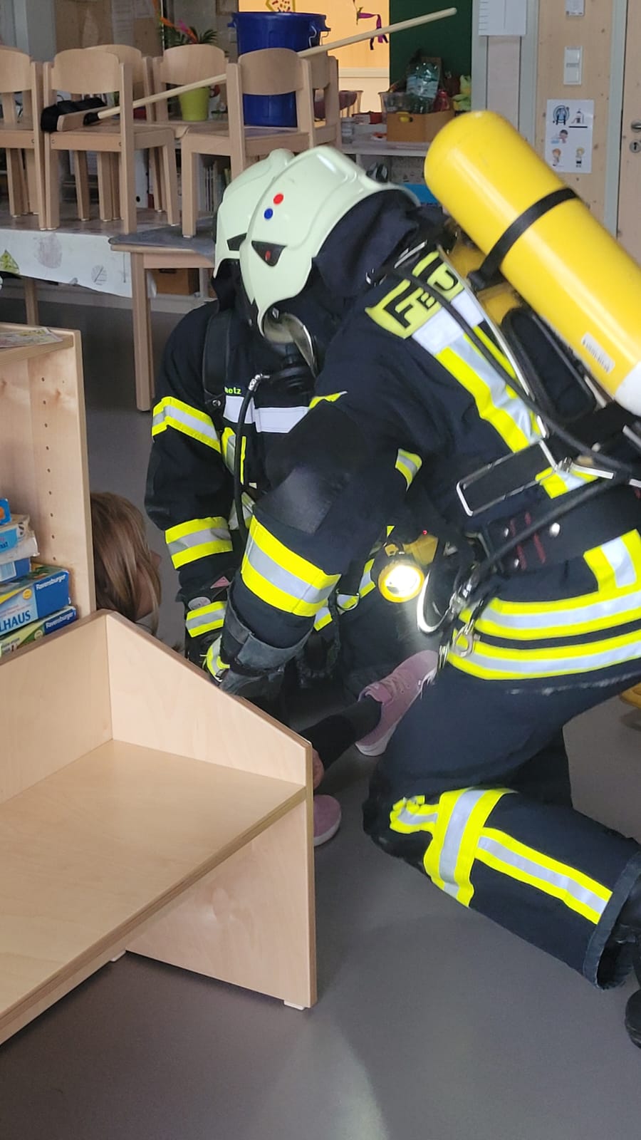 Die Kinder und ein Betreuer waren in einem Gruppenraum und konnten nicht alleine aus dem Gebäude fliehen, da die Tür "verkeilt" war und das Fenster konnte nicht geöffnet werden.