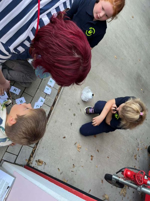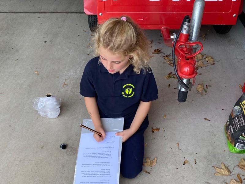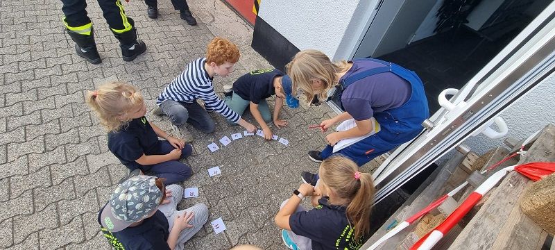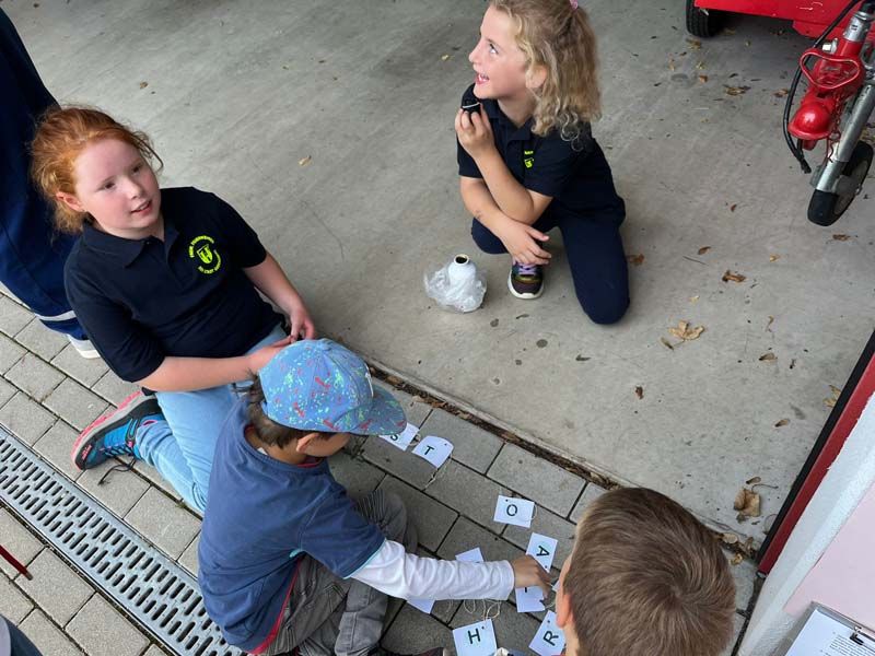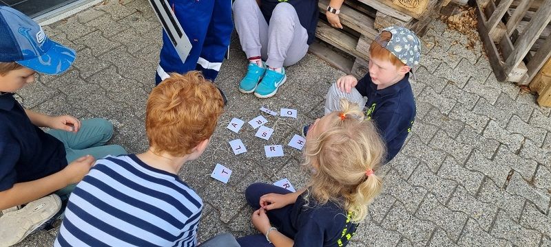 Zielpunkt war für beide Gruppe wieder das Feuerwehrhaus. Dort galt es, die eingesammelten Kärtchen mit den Buchstaben in die richtige Reihenfolge zu bringen und das gesuchte Lösungswort zu finden. Mit ein wenig Unterstützung von den Betreuerinnen fanden beide das gesuchte Wort.