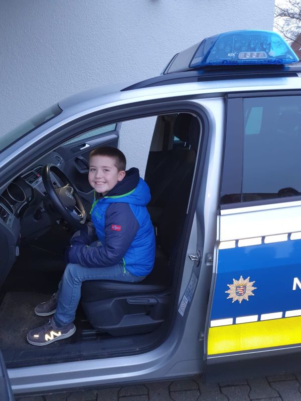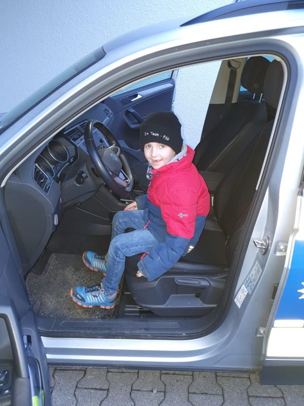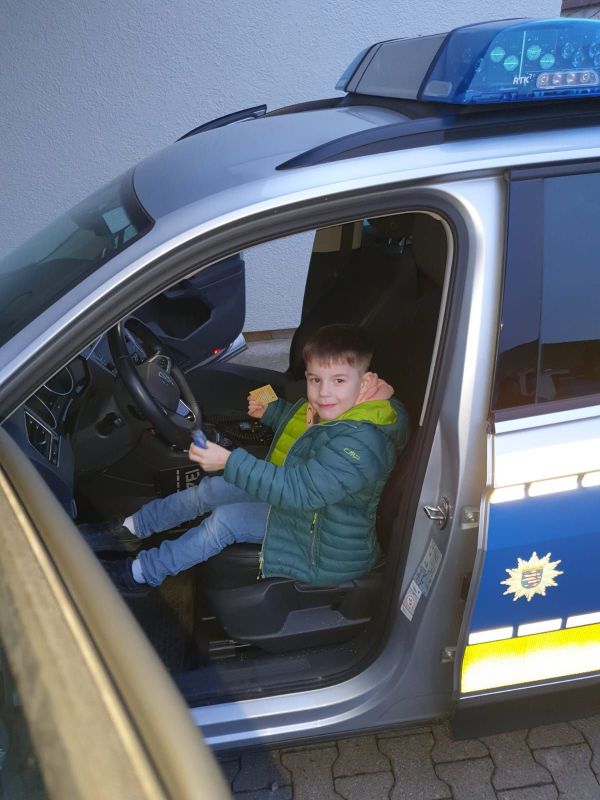 Zum Abschluss durften wir sogar noch in einem Polizeiauto probe sitzen und es gab ein cooles Polizei Silikonarmband für jeden.