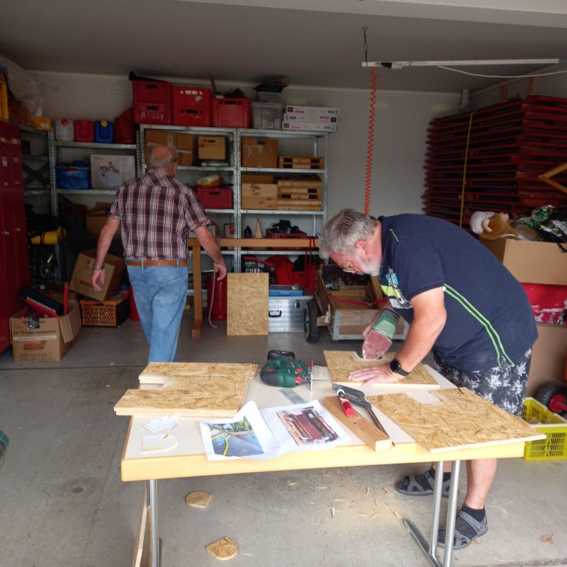 Große Begeisterung: Alters- und Ehrenabteilung baut Holzautos für die Kinderfeuerwehr Dorla
