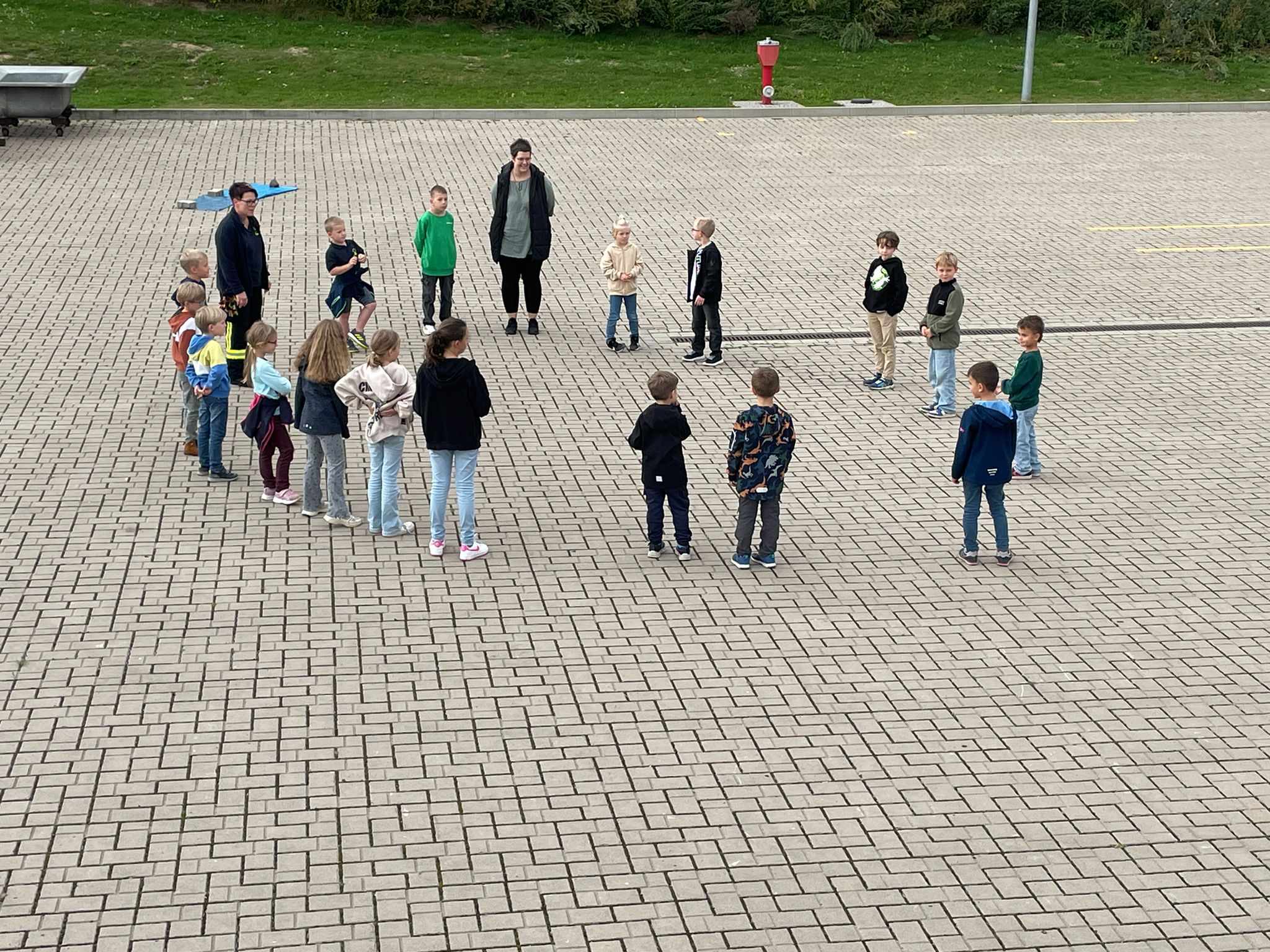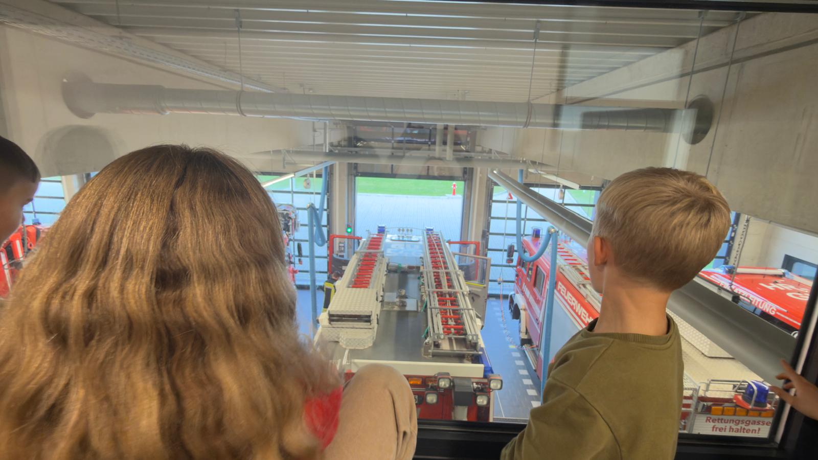 Schnell zum Fenster und den Einsatzkräften und Fahrzeugen beim ausrücken zuschauen.