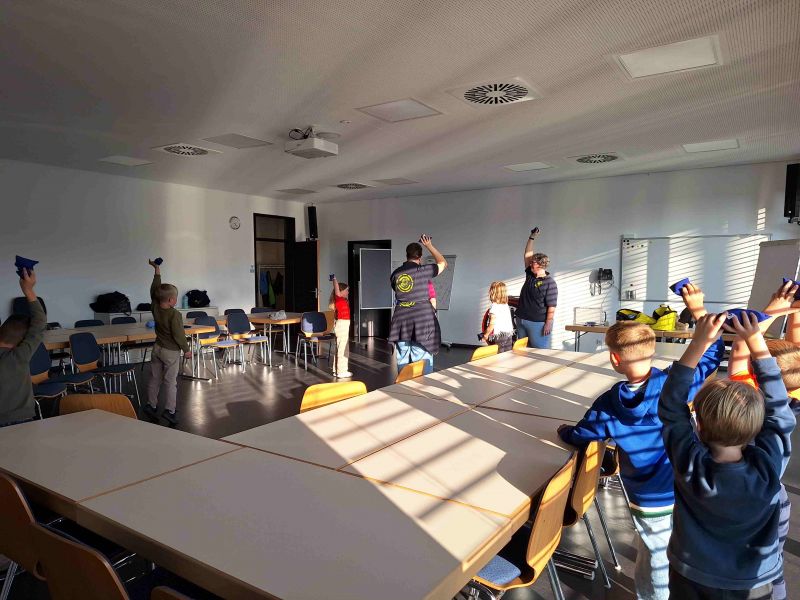 Danach testeten wir die Spielebox - Bewegungskiste, die alle Kinderfeuerwehren vom Landesfeuerwehrverband bekommen haben.