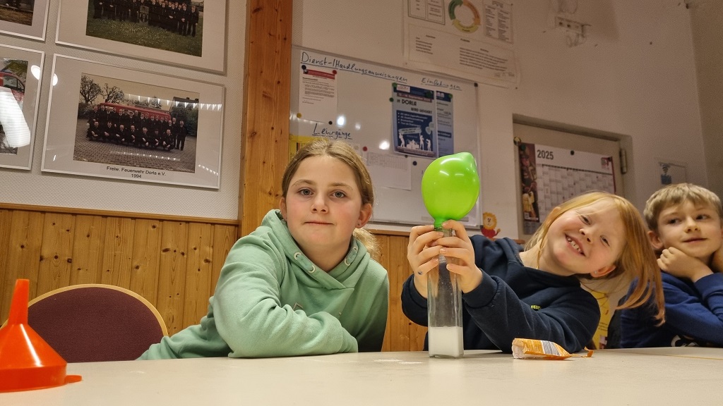 Nik, Mitglied unserer Jugendfeuerwehr, hat sich die Mühe gemacht und mit voller Freude auf die Stunde vorbereitet und den Feuerlöwen ein paar spannende Experimente gezeigt.