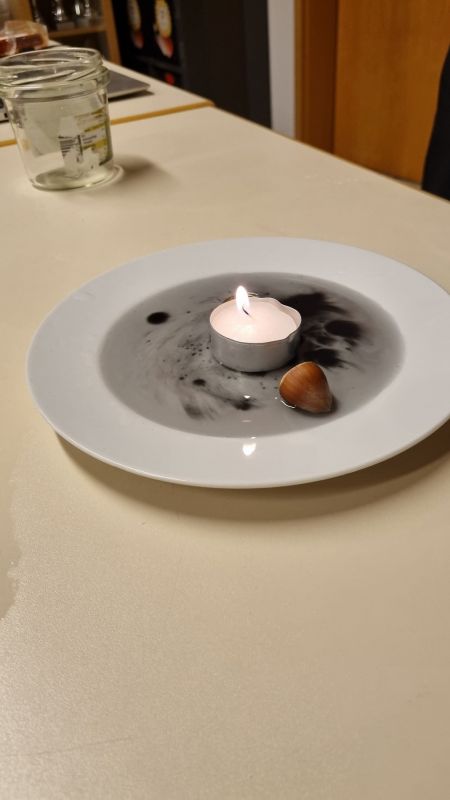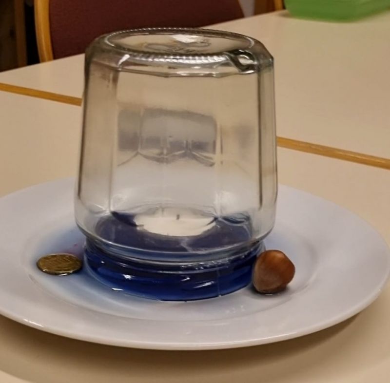 mit einer Kerze und einem Glas den Schatz gerettet.