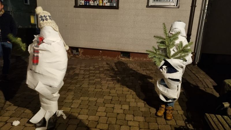 Gemeinsam sind wir zu einer Weihnachtlichen Rallye gestartet. Die Kinder mussten nur mit Ansagen ein anderes Kind durch den Glockenparcour leiten. Es wurde gemeinsam auf dem Dorfplatz gesungen und vor der Kirche galt es mit viel Geschick, ohne Schnee, einen Schneemann⛄️ zu bauen. Als letzter Punkt mussten Liedschnipsel von "Alle Jahre wieder" geordnet werden und das Lied im Anschluss mit Groß und Klein gemeinsam gesungen werden, bevor es den entscheidenden Hinweis auf den Schatz gab.