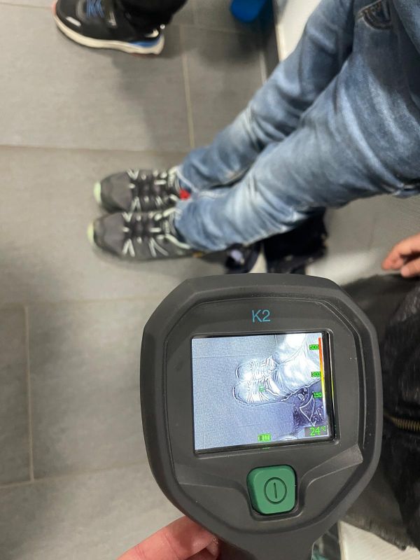 Zunächst haben wir die Wärmeausstrahlung unserer Hände an der Betonwand dargestellt und danach überprüft, wer von allen die wärmsten Füße hat…