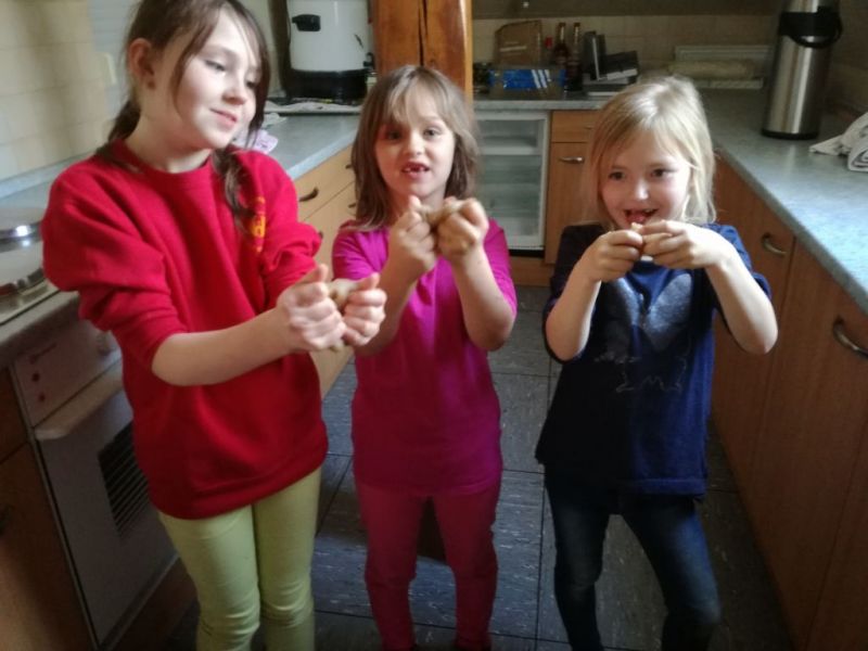 - Schleim: hier wurde aus Flohsamenschalen und Wasser Schleim (Slime) von den Kindern hergestellt. Das gefiel allen sehr gut und das Ergebnis wurde auch mit nach Hause genommen. (da auf natürlicher Basis ist er leider nur einen Tag haltbar)
