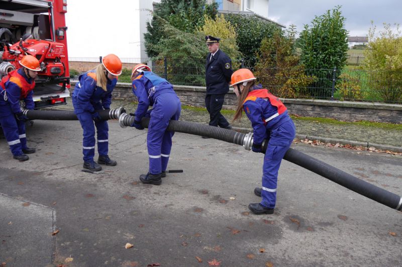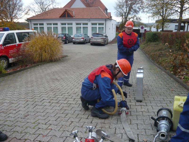 Am vergangenen Samstag stand dann die feuerwehrtechnische Ausbildung im Focus der Prüfer. Drei Aufgaben wurden den Mädchen gestellt, die sie nach den Vorschriften der FwDV 3 zu erfüllen hatten. Schwierigkeit hierbei war, dass die Aufgaben nicht bekannt waren und die Posten in der Staffel wurden von den Prüfern bestimmt.