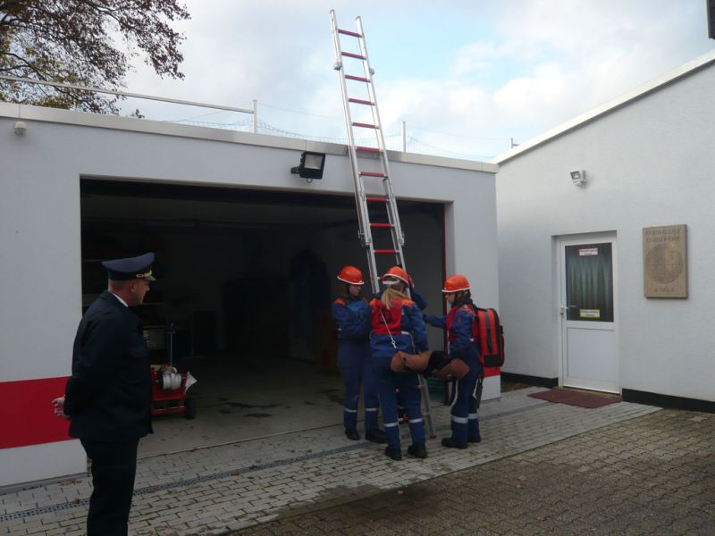 3. 3. Vornahme der Steckleiter und Versorgung eines Verletzten auf einem Flachdach.