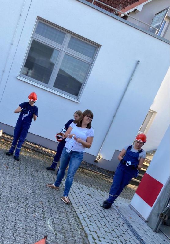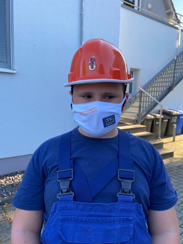 Dazu hat sich unser Führungstrio der Stadtjugendfeuerwehr was einfallen lassen. Zum Übungsstart bekam jedes Jugendfeuerwehrmitglied einen Mund-Nasen-Schutz. Da eine weiße Maske zu langweilig wäre, waren die Stadtjugendfeuerwehrwartinnen fleißig und haben auf jeden Mundschutz das Logo von deinejugendfeuerwehr.de