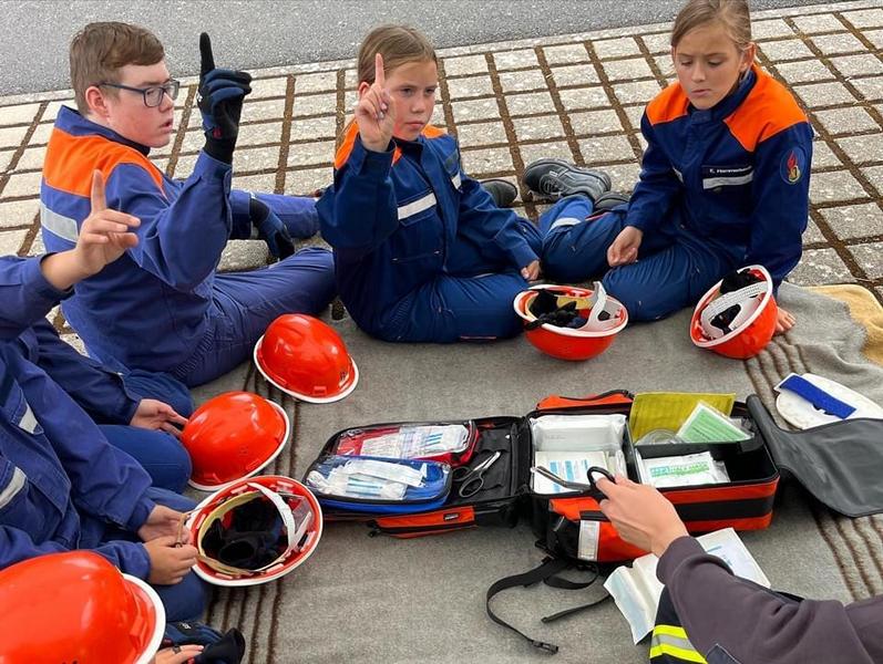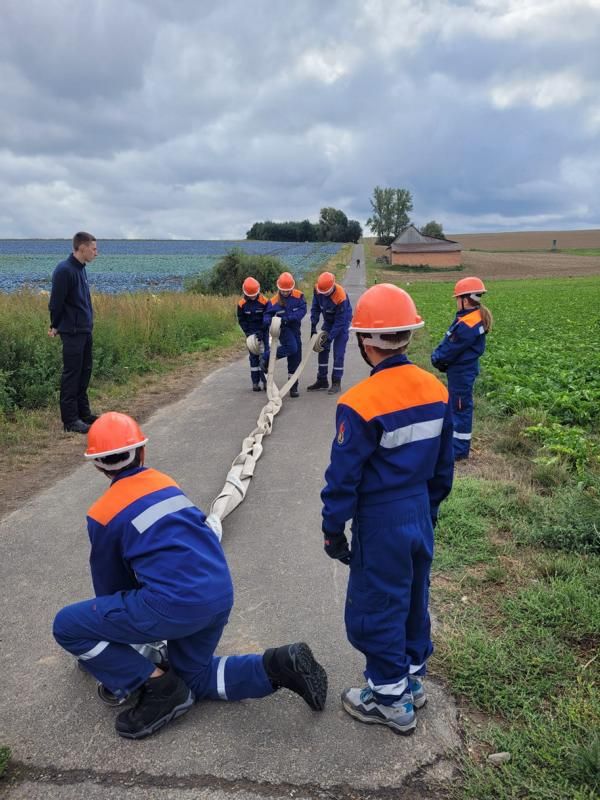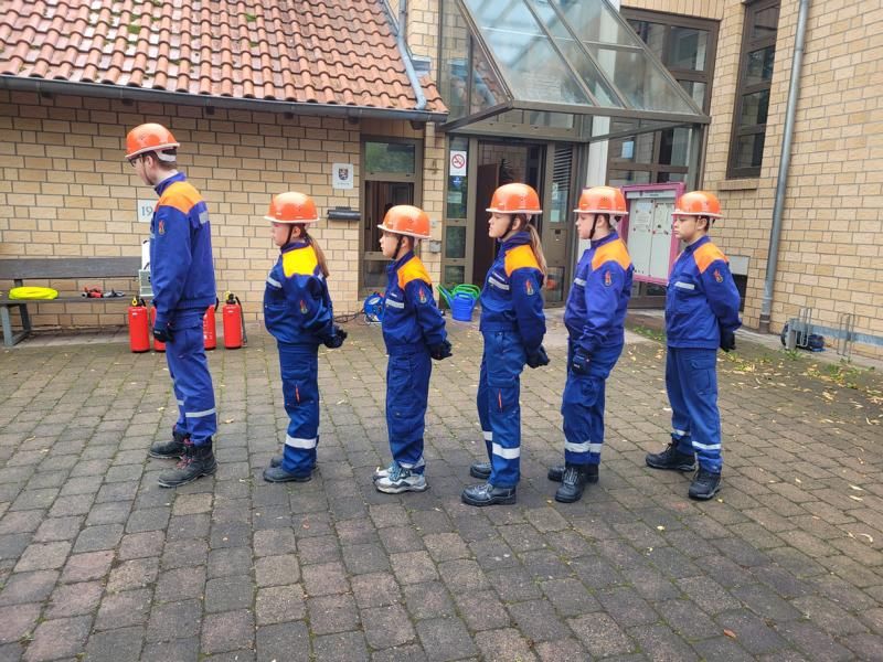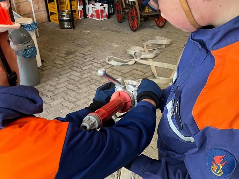 Nach einer kurzen Begrüßung mussten die jungen Feuerwehrleute ihr Wissen und den Umgang mit feuerwehrtechnischen Geräten unter Beweis stellen.