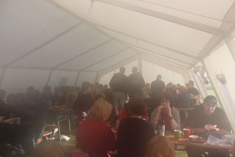 Leider war für das Jugendforum und die Betreuer noch nicht Schluss. Da es ordentlich am regnen war, mussten die Zelte Daheim nochmals aufgebaut und gereinigt werden.