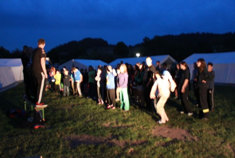 Gegen 21:00 Uhr wurde dann endlich zur Nachtwanderung aufgebrochen, welche unser Jugenforum anführte und auf deren Verlauf so manch schräge Gestalt im Unterholz auf unsere Jugendlichen wartete. Nach gut einer Stunde hatte dieser Spuk dann ein Ende und alle Teilnehmer erreichten das sichere Lager! Und so neigte sich der erste Abend, mit viel Spaß und einem abwechslungsreichen Programm dem Ende und die Feldbetten wurden endlich belegt.