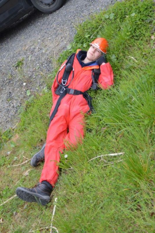Als alle dachten, dass die Übung fast zu Ende ist, musste Paul noch einen Bewusstlosen Angriffstrupp spielen. Er wurde schnell von dem Rettungstrupp gerettet.