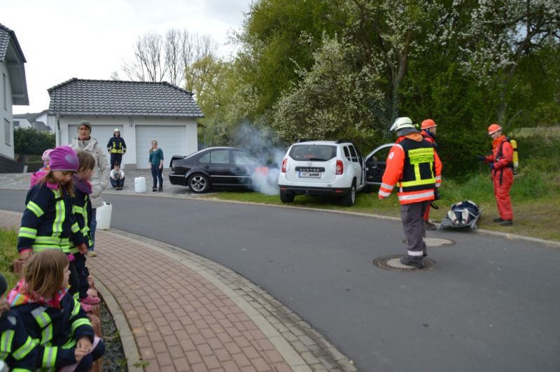 Unsere befreundete Jugendfeuerwehr Wolfershausen nahm Mitte April an dem Berufsfeuerwehrtag der Jugendfeuerwehren Felsberg teil. Wie das nun schon Tradition ist, wurden wir zu einer Alarmübung eingeladen. Da es sich um eine Übung mit Gefahrstoffen handelte, fuhren wir bereits mittags nach Wolfershausen, um zusammen mit der dortigen Jugendfeuerwehr ein kurzen Unterricht zum Thema Gefahrgut abzuhalten. Nach dem Unterricht aßen wir gemeinsam Mittag um anschließend bei Spiel und Spaß auf die Alarmierung zu warten.