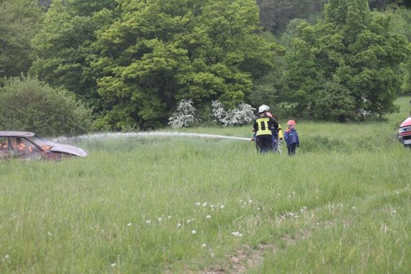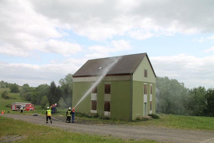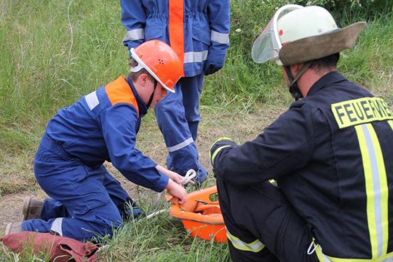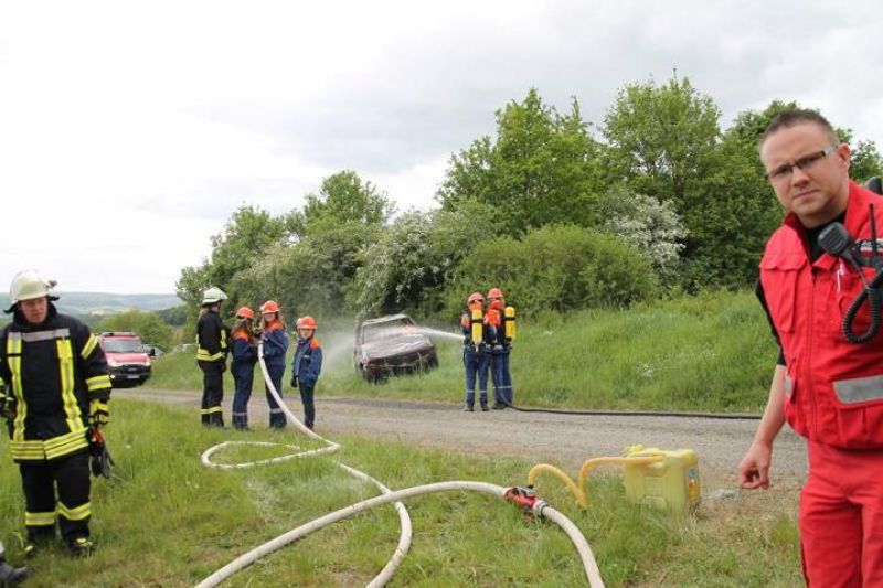 So galt es Personen aus einem verrauchten Gebäude zu retten. Personen von einem Dach zu bringen. Einen eingeklemmten PKW – Fahrer zu befreien sowie ein brennendes Auto zu löschen. Frank Degenhardt zeigte sich mit der Übung sehr zu frieden, die nach ca. 1 Stunde beendet war.