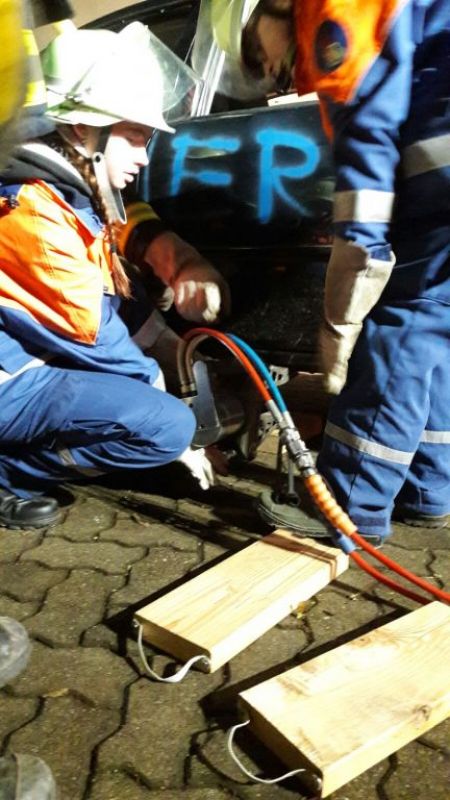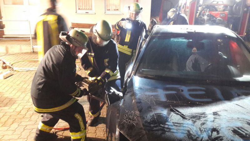Übungsszenario war ein Verkehrsunfall mit einer eingeklemmten Person.