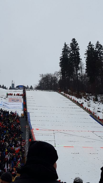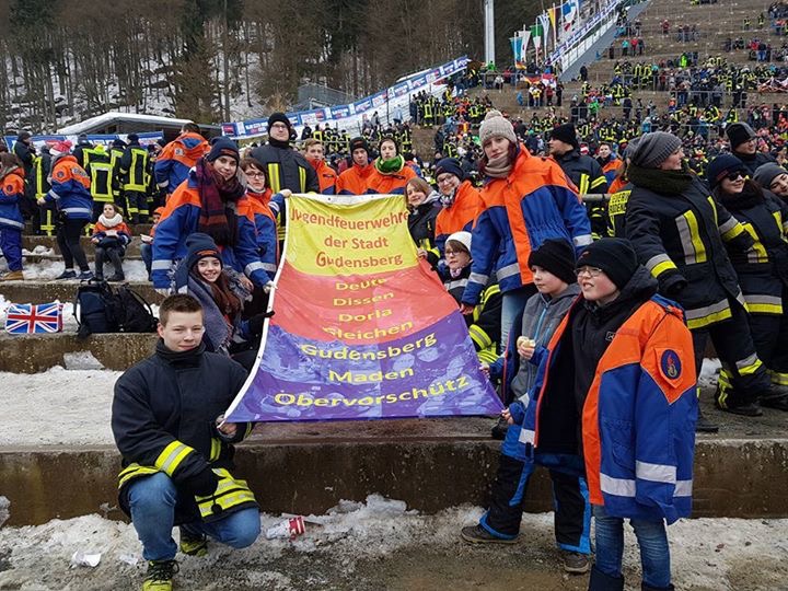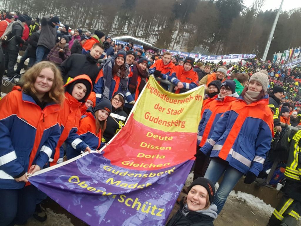 An der Schanze angekommen konnten sich die Jugendfeuerwehren mit den anderen Jugendfeuerwehren im sogenannten Feuerwehrblock, direkt am Aufsprunghang, einen guten Platz sichern. Für viele Jugendliche war es zum Teil das erste Mal, dass sie an einer solchen Schanze standen. Demzufolge war der erste Eindruck der Schanze atemberaubend und so war beispielsweise der Aufsprunghang, in dem die Ski-Springer landen, viel steiler als er im Fernsehen wirkt und auch die gewaltige Kulisse beeindruckte die Jugendfeuerwehren aus NRW und Hessen.