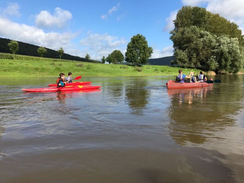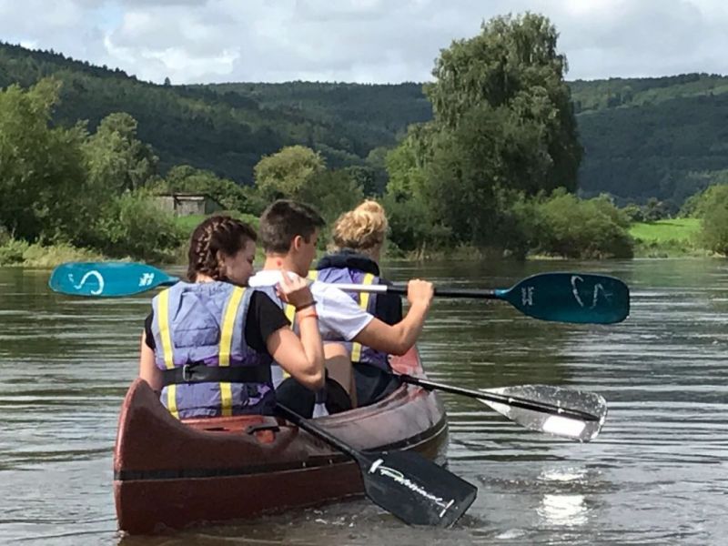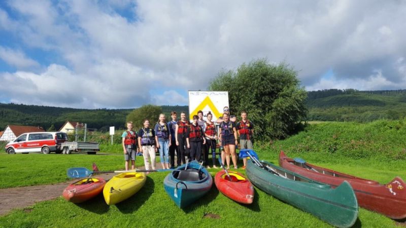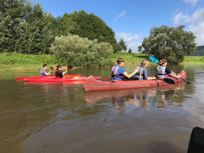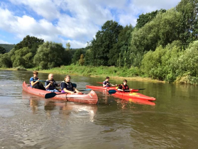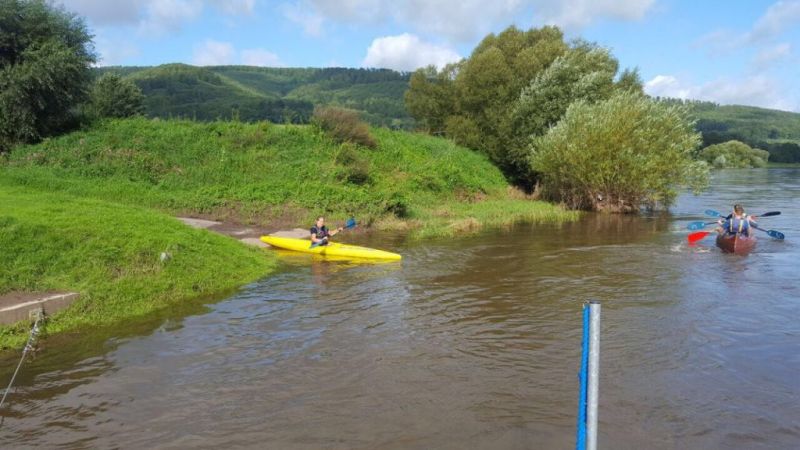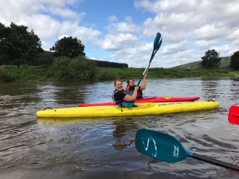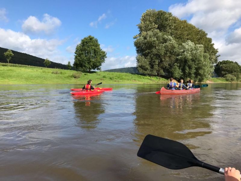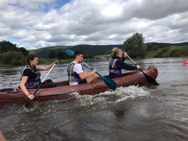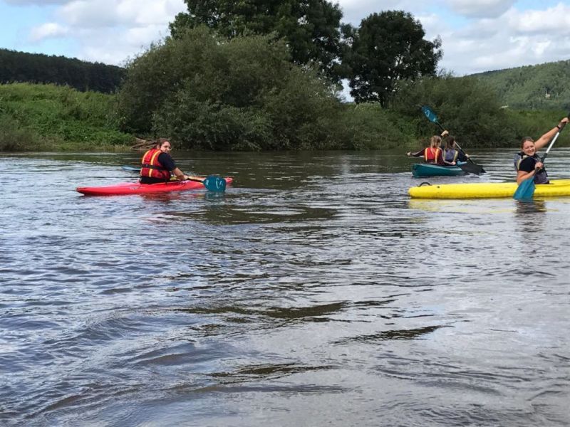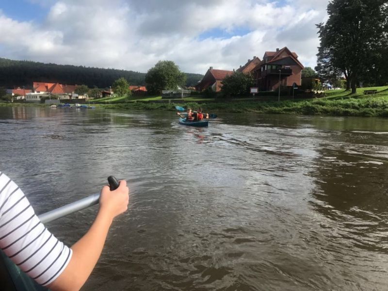 Gut gestärkt ging es also nach dem Frühstück los. Für die größeren Kids ging es zur einer ca.eineinhalbstündigen Kanutour auf die Weser. Nach einer kurzen Einweisung und der Erklärung wie man mit dem Paddel gut vorankommt und richtig lenkt, konnte es, nachdem die Schwimmwesten richtig saßen, losgehen. Hier ein Dank an dir Kreis Jugendfeuerwehr die uns die Kanus zur Verfügung stellte. Am Ende der Tour, waren alle froh, das Ufer trocken erreicht zu haben und wieder festen Boden unter den Füßen zu haben, auch wenn hier eine Abkühlung nicht die schlechteste Alternative gewesen wäre, denn es war doch sehr anstrengend die richtige Balance zu halten um nicht zu kentern.