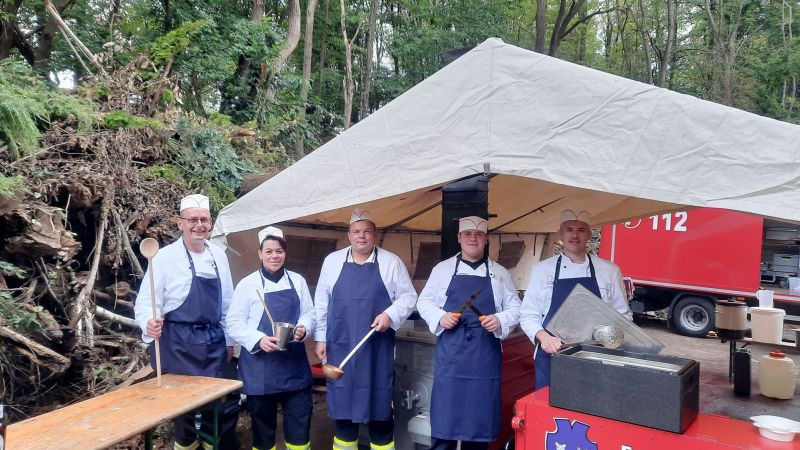 Der Kocheinsatz z.B. in Homberg begann für das Feldküchenteam bereits um 7 Uhr und endete um 18 Uhr.