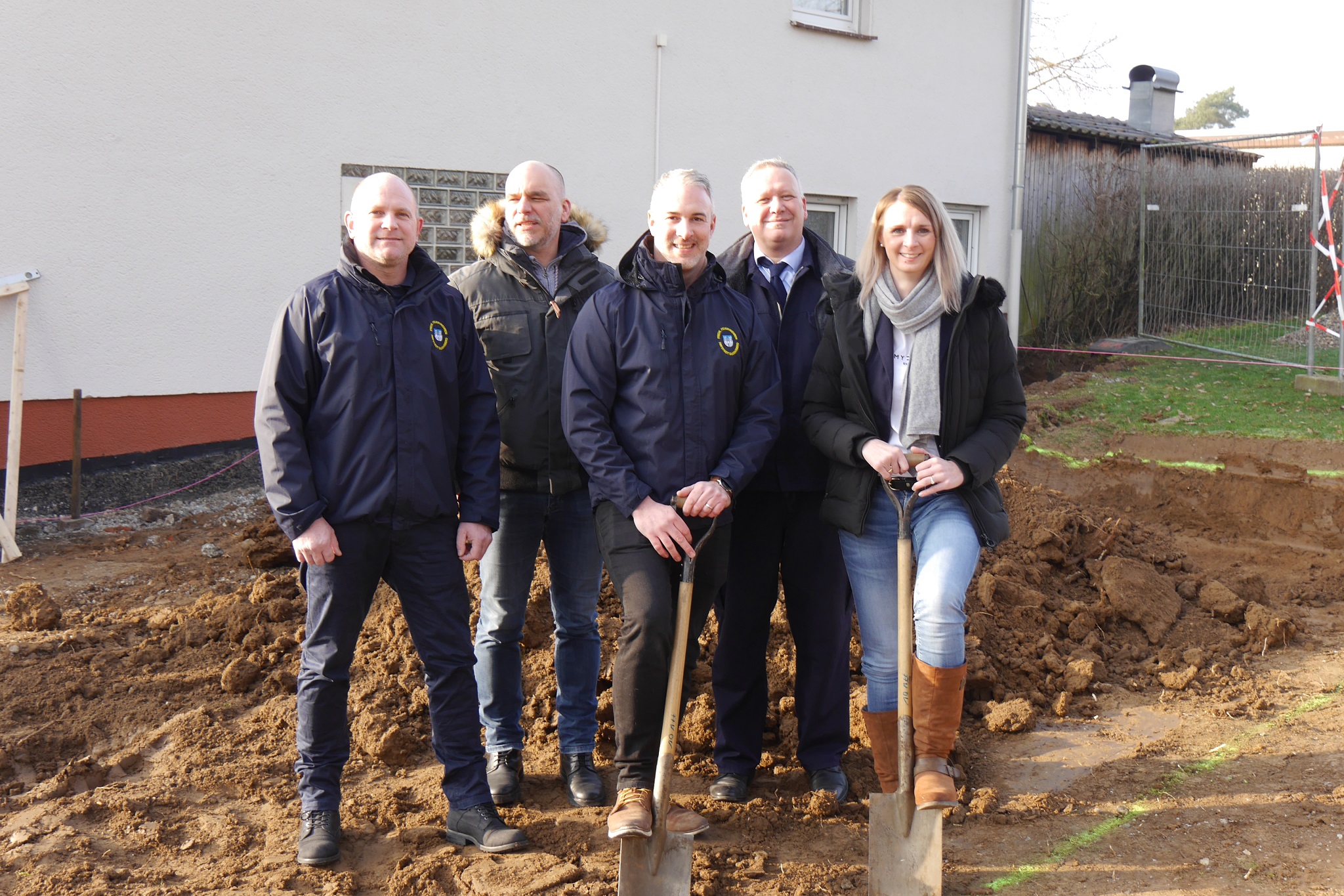 Für das Foto nahmen Bürgermeisterin Sina Best (2. v.r.) und Wehrführer Sebastian Hempel (3.v.r.) den Spaten in die Hand. Mit dabei waren