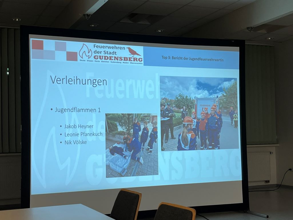 Die Jugendfeuerwehrwartinnen Romina Eubel und Sara Ohlwein präsentierten einen beeindruckenden Rückblick auf die Aktivitäten der Jugendfeuerwehr im Jahr 2024.
