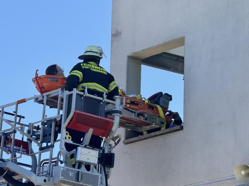 erfolgt die Personenrettung über die Drehleiter.