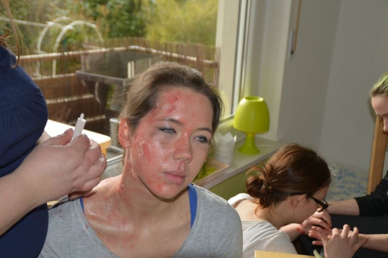 Für den Übungsdienst Anfang April Stand eine Atemschutzübung auf den Plan. Da hatte Nils Gerhold die Idee, der für die Ausbildung verantwortlich war, dies mit einer Alarmübung zu verbinden. Er suchte ein Übungsobjekt, machte sich über den Ablauf Gedanken und, das war für uns alle neu, fragte beim Kulturstall Deute an, ob sich den vier bis fünf Schauspieler bereit erklären würden, bei der Übung verletzte zu spielen.