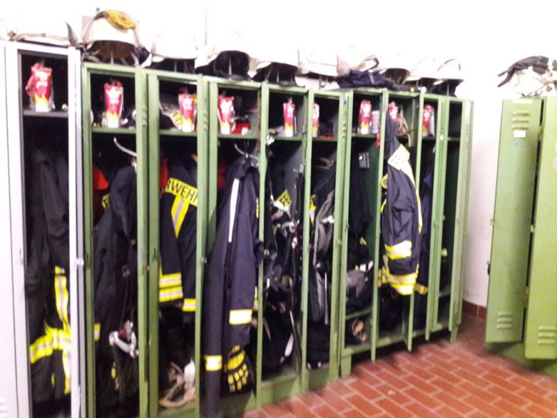 Alle 63 Spinde der Mitglieder der Einsatzabteilung Gudensberg standen am 6.12., als man sich zum Jahresabschluss der gemeinsamen Ausbildung traf offen.