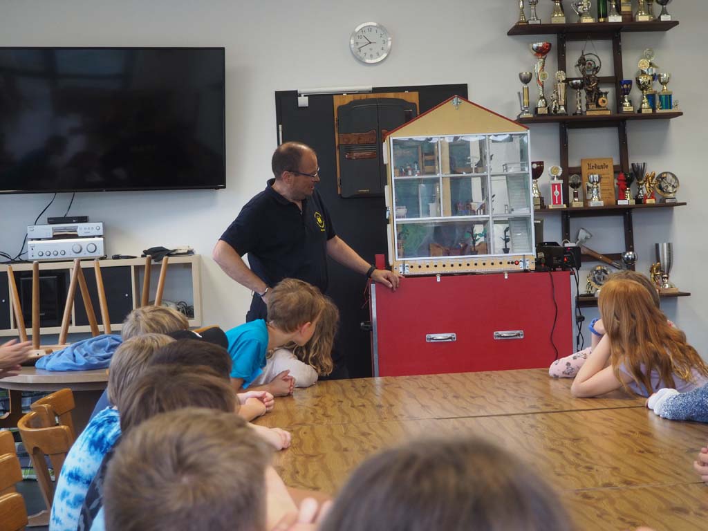 Am vergangenen Freitag, den 23.06.2023 besuchten uns ca. 80 Kinder der 3. Klassen der Grundschule Gudensberg im Feuerwehrhaus Gudensberg. Nach einer kurzen Vorstellungs- und Fragerunde wurde aufgeteilt und an vier Stationen erfuhren die Kinder wichtige und interessante Sachen zum Brandschutz und der Feuerwehr.