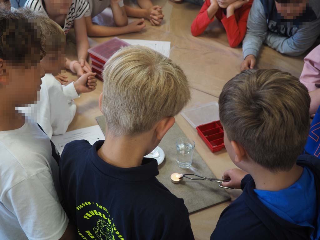 „Was brennt, was brennt nicht“, hier konnten die Kinder verschiedene brennbare Materialien und ihr Verhalten bei einem Brand selbst testen und anschließend besprechen.